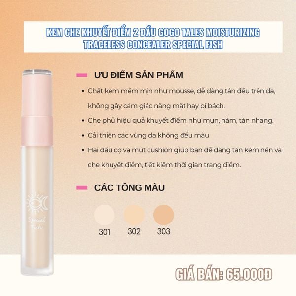 1.Kem Che Khuyết Điểm 2 Đầu GOGO TALES Moisturizing Traceless Concealer Special Fish
