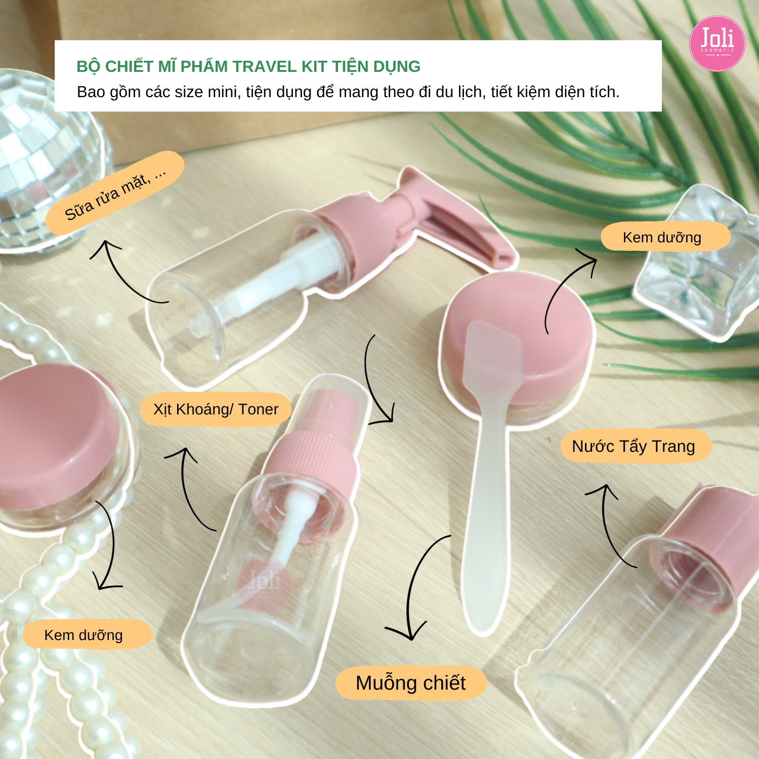 Bộ chiết mỹ phẩm 7 món giúp bạn dễ dàng chiết những đồ skincare cần thiết của mình để mang theo những chuyến du lịch, đi chơi, công tác,...