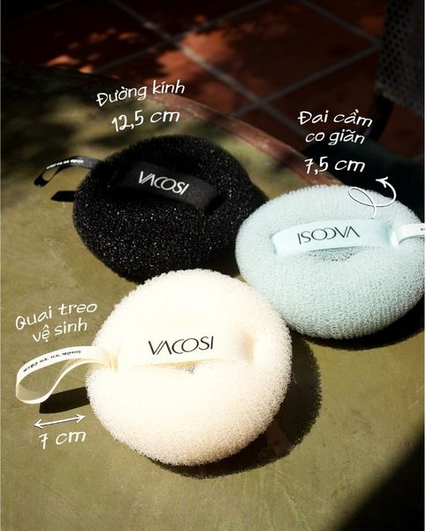 Thiết kế cuộn tròn "donut" và quai đeo ngang: cầm nắm chắc chắn, mau khô, vệ sinh sạch sẽ bông sau mỗi lần sử dụng