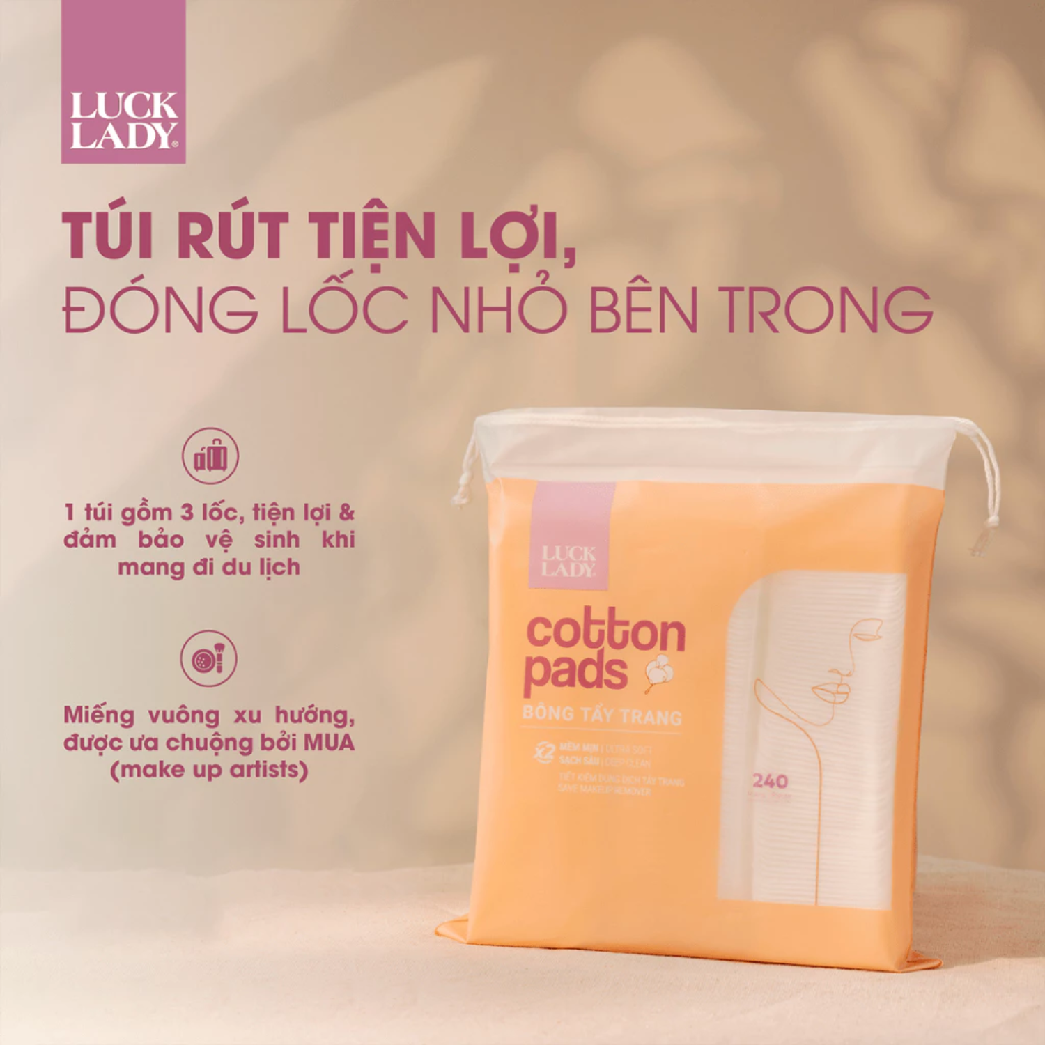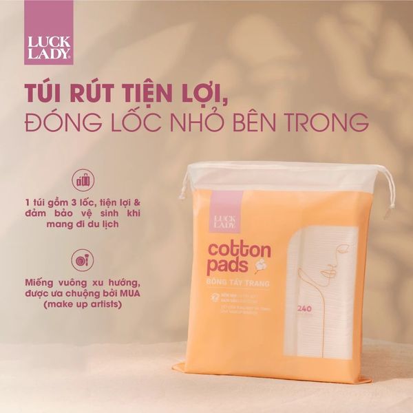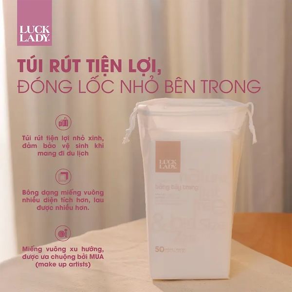 Bông tẩy trang LUCK LADY là sản phẩm được nhiều chị em tin dùng nhờ chất liệu an toàn, thiết kế tiện lợi và công dụng đa năng trong quá trình chăm sóc da mỗi ngày. Sản phẩm giúp làm sạch da hiệu quả, đồng thời hỗ trợ thoa dưỡng chất, giữ cho làn da luôn mềm mại và tươi trẻ.