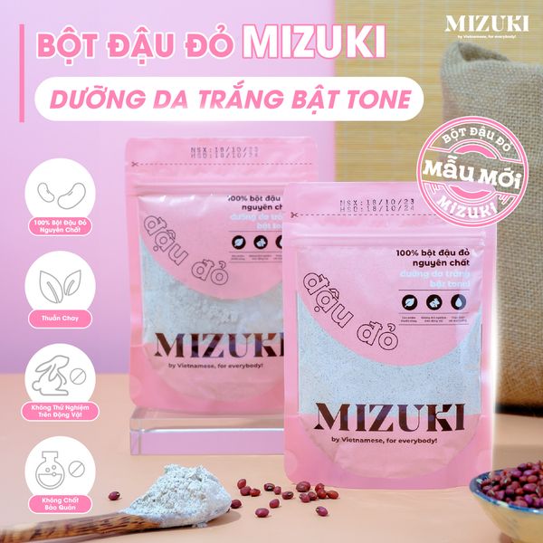 Bột đậu đỏ Mizuki giữ nguyên được toàn bộ thành phần dinh dưỡng của đậu đỏ với hàm lượng cao các nhóm vitamin A, C, E, B1, B9… có lợi cho làn da. Thường xuyên sử dụng bột đậu đỏ Mizuki sẽ giúp cải thiện tone da, đồng đều sắc tố, cải thiện độ đàn hồi, se khít lỗ chân lông, loại bỏ tế bào chết và làm mịn biểu bì, mang đến sự trẻ trung đầy sức sống cho làn da.