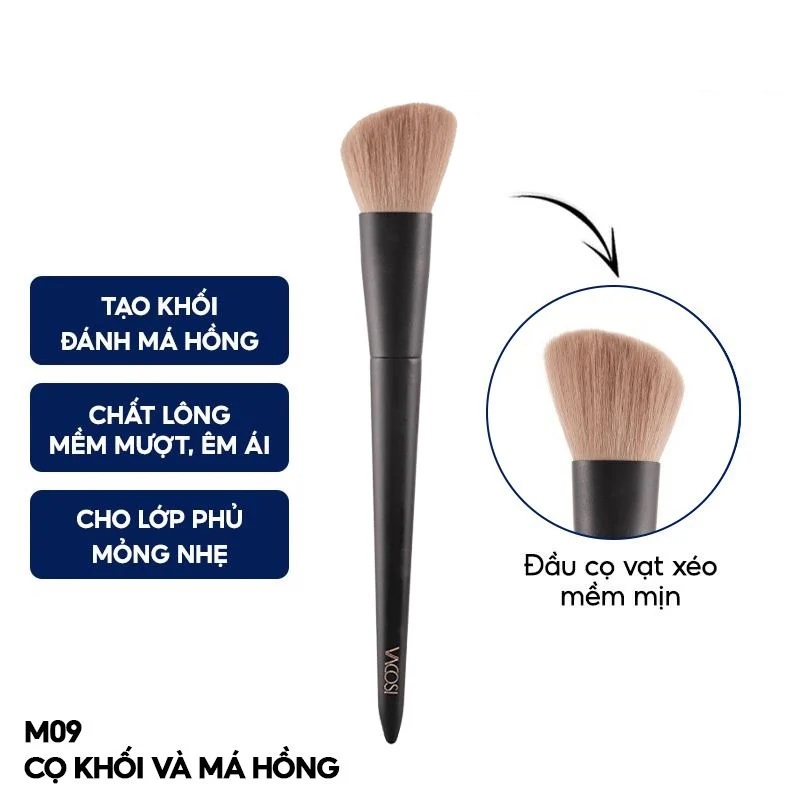Cọ Khối Và Má Hồng Vacosi Angled Powder & Blush Brush - M09 là cọ trang điểm đến từ thương hiệu Vacosi với thiết kế đầu lông mềm mịn, thân cọ bằng nhựa trong, bền đẹp luôn làm hài lòng các cô nàng yêu thích trang điểm.