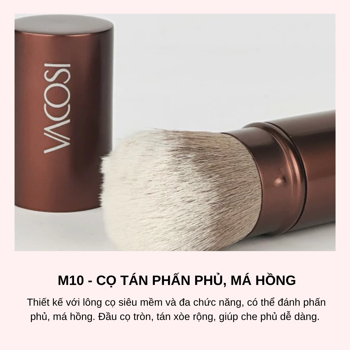Mỗi cô gái đều có những vật dụng trang điểm “bất ly thân” trong túi xách của mình, trong đó không thể không nhắc đến cọ phấn phủ. Đây được coi là trợ thủ đắc lực giúp càng nàng hoàn thiện lớp nền, giúp khuôn mặt tươi sáng đều màu, kiềm dầu hơn. Cọ Phủ Bỏ Túi Vacosi Powder Brush - M10 đến từ thương hiệu mỹ phẩm đình đám Vacosi chắc hẳn không còn là cái tên xa lạ với những cô nàng yêu thích trang điểm.