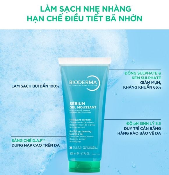 Gel Rửa Mặt Bioderma Sébium Gel Moussant là sữa rửa mặt thanh lọc dịu nhẹ được thương hiệu dược mỹ phẩm Bioderma thiết kế chuyên biệt dành cho làn da dầu & hỗn hợp, giúp loại bỏ các tạp chất trên da, giải phóng bít tắc và làm thông thoáng lỗ chân lông, đồng thời kiểm soát dầu thừa, ngăn ngừa mụn hiệu quả mà vẫn duy trì pH tự nhiên trên da.