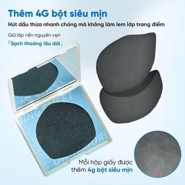 Mỗi tờ được phủ 4g bột siêu mịn giúp hút dầu nhanh mà không lem lớp trang điểm