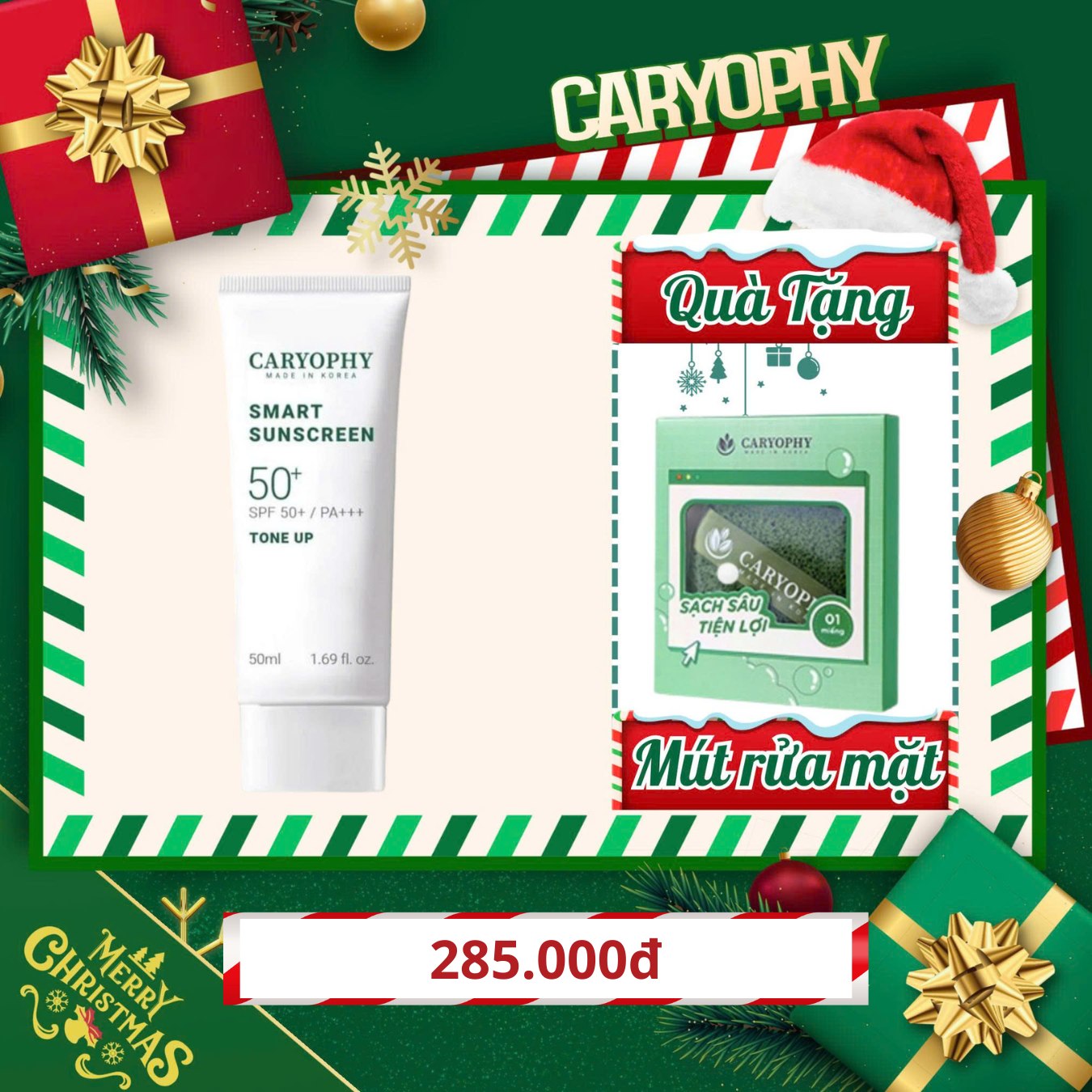 Kem Chống Nắng Caryophy Smart Sunscreen Tone Up SPF50+ PA+++ là sản phẩm chống nắng mới đến từ thương hiệu mỹ phẩm Caryophy Hàn Quốc, với công thức chống nắng vật lý kết hợp hoá học, giúp tạo lớp màng chắn bảo vệ da khỏi tia UV, ngăn không cho cho chúng xuyên thấu vào da. Bên cạnh đó, sản phẩm có khả năng chống thấm thấm nước cao, nâng tone da nhẹ nhàng và hỗ trợ ngăn ngừa mụn, làm mờ thâm hiệu quả.