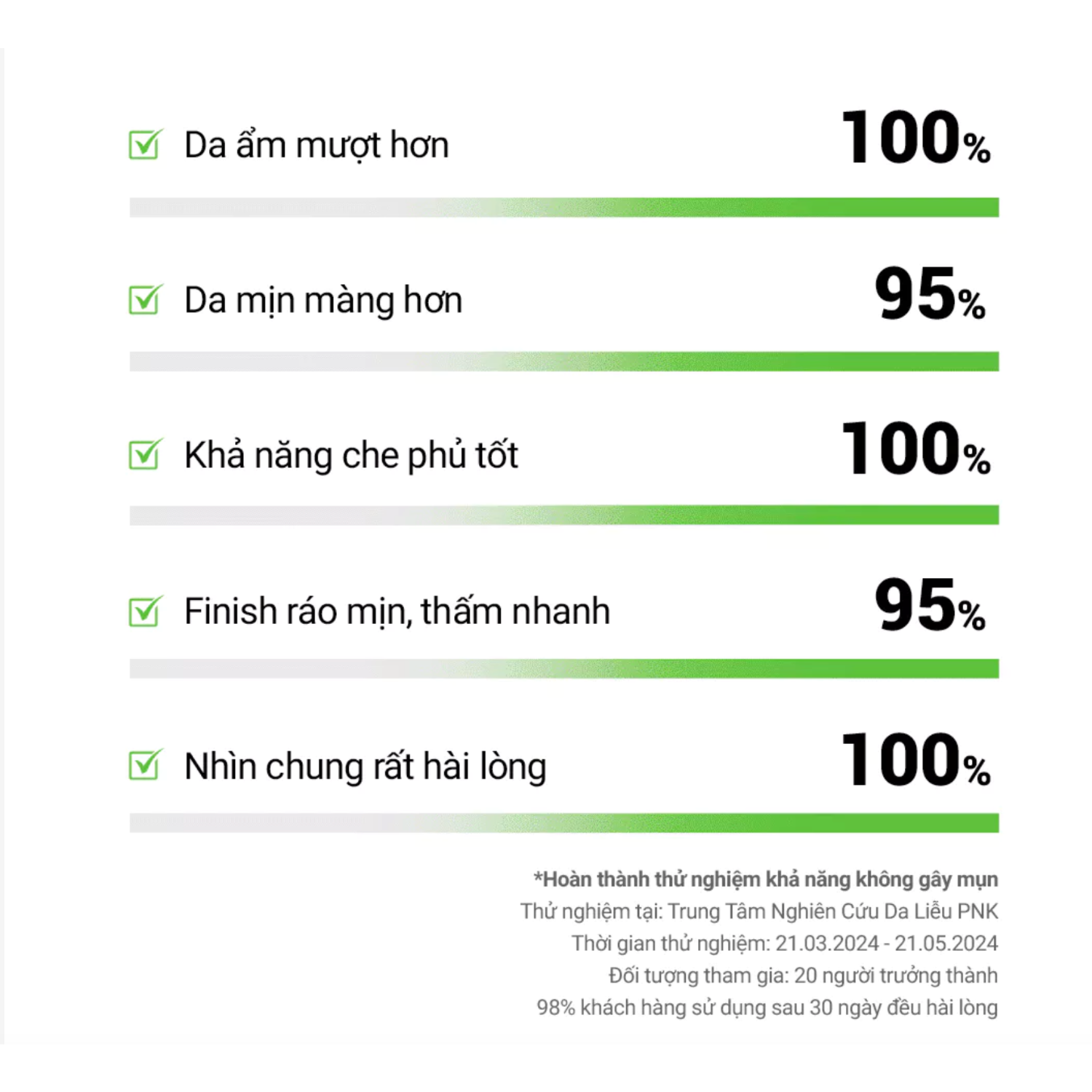 Với chất kem màu da cho nên có khả năng che khuyết điểm, nâng tone da trắng sáng, đều màu.