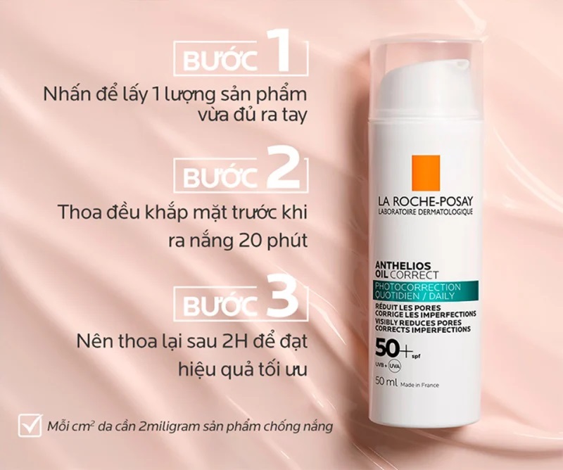 Lấy lượng kem chống nắng bằng khoảng 1 đồng xu, thoa đều lên da mặt và cổ. Lưu ý tránh vùng mắt. Trong trường hợp kem tiếp xúc với mắt, ngay lập tức rửa mắt bằng nước sạch.