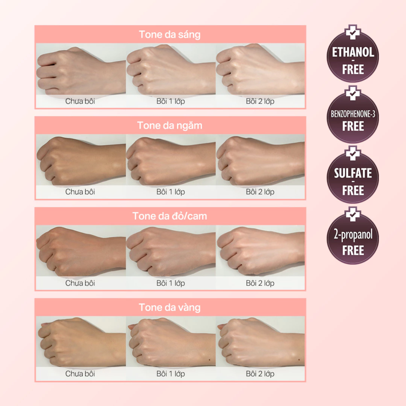 Mang lại hiệu ứng tone-up nhẹ nhàng, giúp da sáng và đều màu hơn ngay sau khi thoa, tạo ra vẻ ngoài "pink glow" tự nhiên mà không cần makeup.