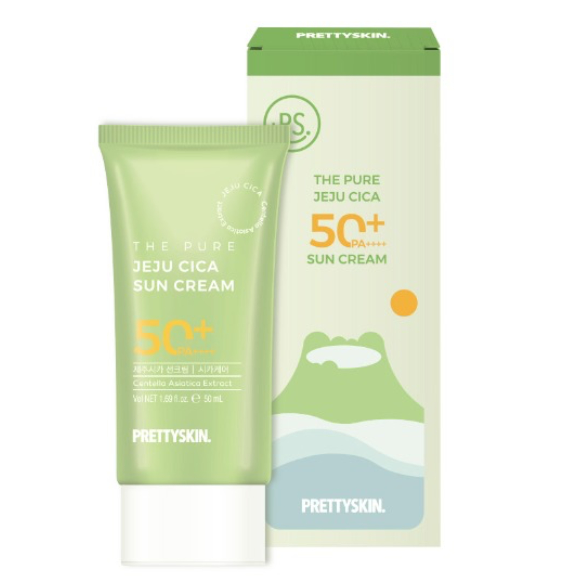 Kem chống nắng Rau Má Jeju Cica Sun Cream đến từ thương hiệu Pretty Skin đang làm mưa làm gió tại Hàn Quốc. Sản phẩm kem chống nắng rau má có chỉ số chống nắng cao SPF 50+, PA++++ mang lại khả năng chống nắng cao lên đến 8h đồng hồ. Đồng thời bảo vệ da khỏi các tác động của tia UVA, UVB, tia hồng ngoại và ánh sáng xanh.