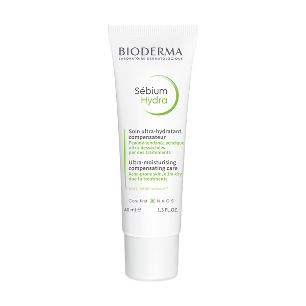 Kem Dưỡng Cấp Nước, Làm Dịu Da, Phục hồi Cho Da Mụn Điều Trị Da Liễu Bioderma Sebium Hydra là kem dưỡng thuộc thương hiệu Bioderma giúp cải thiển làn da thiếu nước làm tiết dầu nhiều hoặc khô căng khó chịu (do các liệu pháp điều trị da liễu, tác nhân bên ngoài...), ngăn ngừa cảm giác khô căng và bong vẩy khi điều trị mụn với Isotretinoin, giúp tăng cường độ dung nạp của làn da, điều tiết bã nhờn và ngăn ngừa bít lỗ chân lông
