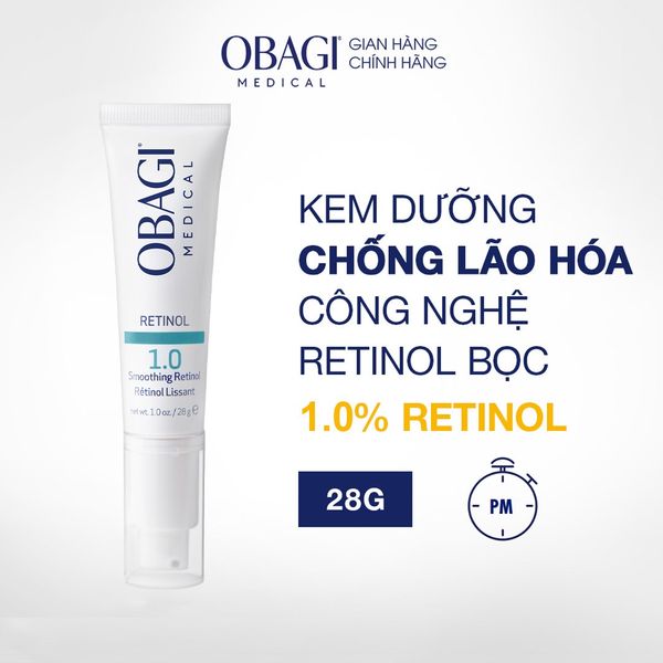 Kem dưỡng Obagi chứa 1% Retinol giúp đem lại làn da mịn màng, giảm thiểu vẻ ngoài của nếp nhăn, rãnh sâu, cũng như cải thiện tông da không đều màu cho tổng thể da rạng rỡ, trẻ trung hơn.Với công thức ưu việt chứa 1% Retinol tinh khiết được ứng dụng công nghệ vận chuyển “Entrapped Retinol” gắn kết giúp giải phóng dần dần các thành phần để giảm thiểu sự xuất hiện của nếp nhăn, giúp giảm thiểu các dấu hiệu lão hóa da, đồng thời vẫn nhẹ nhàng với làn da.