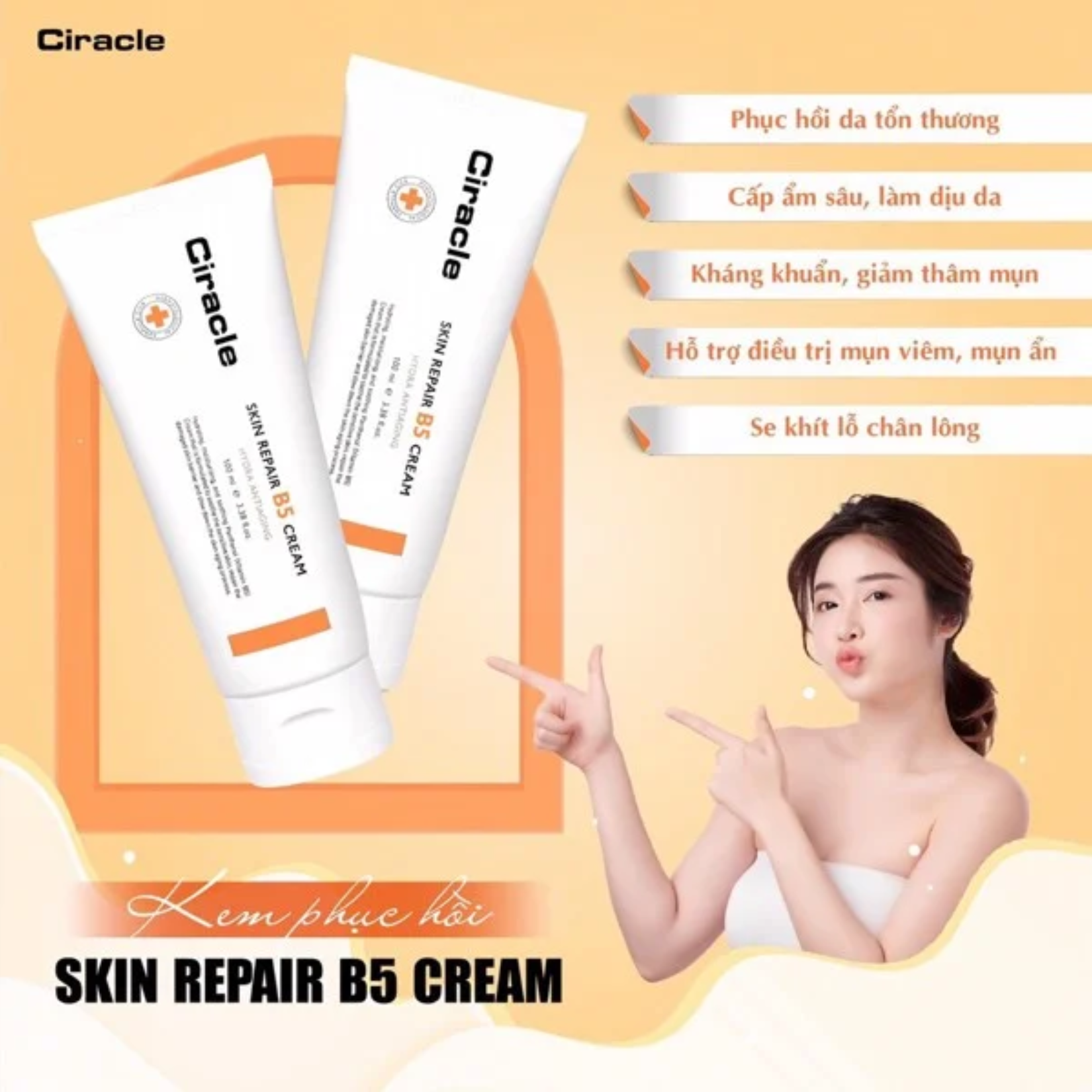Kem Dưỡng Phục Hồi Da Ciracle Skin Repair B5 Cream là kem phục hồi da B5 của thương hiệu Ciracle với thành phần chính là vitamin B5 có tác dụng phục hồi và tái tạo da hiệu quả, ngăn ngừa các vết thâm do mụn gây ra. Kem Dưỡng Phục Hồi Da Ciracle Skin Repair B5 Cream sở hữu công thức dưỡng ẩm toàn diện giúp tái tạo da và ngăn ngừa, làm chậm quá trình lão hóa. Sản phẩm cực an toàn, lành tính cho cả da nhạy cảm.