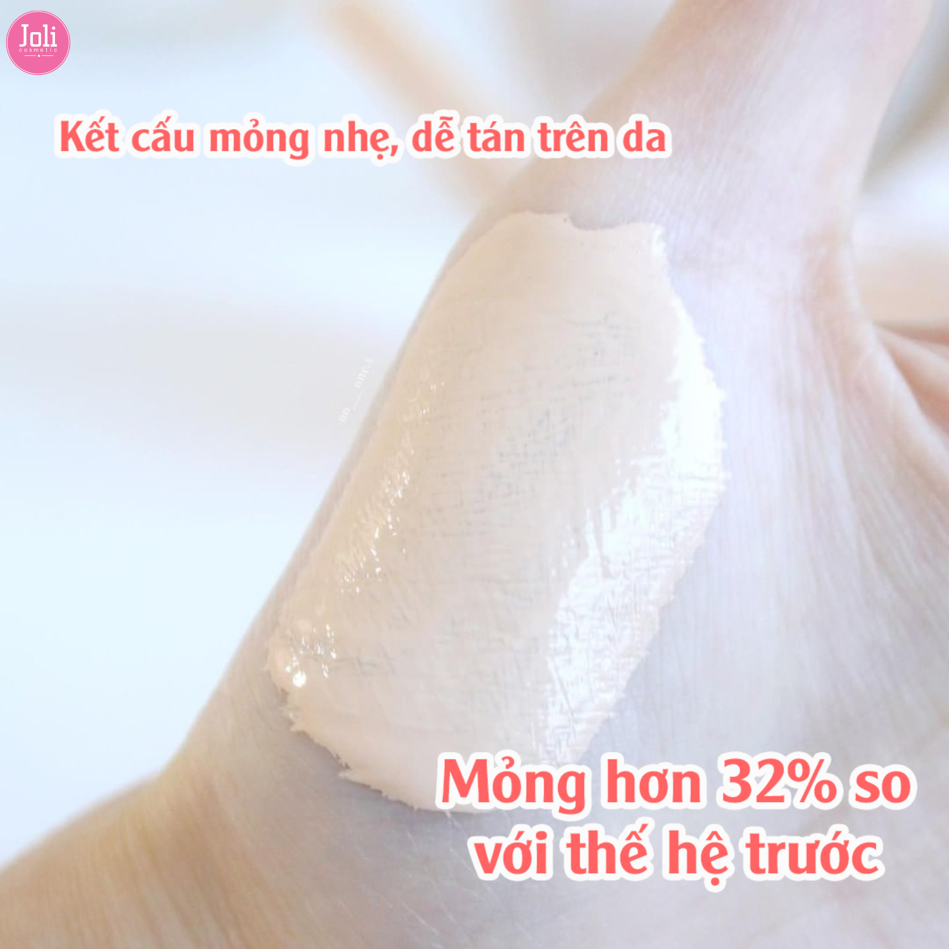Kết cấu mỏng nhẹ, không gây bít tắc lỗ chân lông, thích hợp cho da thường đến da khô