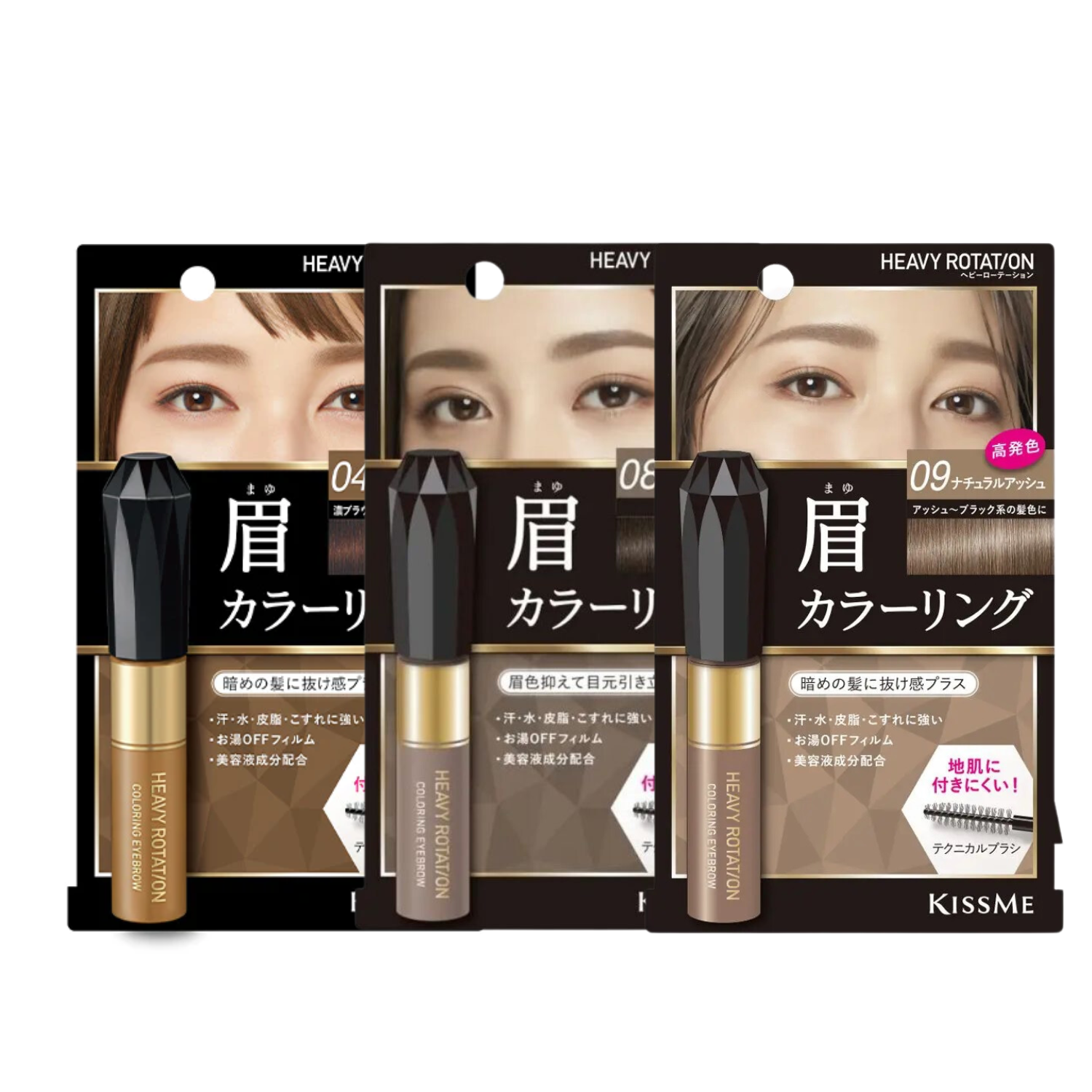 Hiện sản phẩm Mascara Lông Mày Kissme Heavy Rotation Coloring Eyebrow 8g có 3 màu: