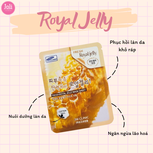 - Mặt Nạ Dưỡng Da Chiết Xuất Từ Thiên Nhiên 3W Clinic Fresh Mask Sheet hiện đã có mặt tại Joli Cosmetic nổi bật với thành phần chính chiết xuất 100% từ thiên nhiên an toàn cho da và áp dụng công nghệ tiên tiến giúp dưỡng chất thẩm thấu nhanh và sâu vào từng tế bào da, 3W Clinic Fresh Mask Sheet chứa dưỡng chất và Vitamin dồi dào giúp nuôi dưỡng, tái tạo và phục hồi làn da một cách hiệu quả, dưỡng da sáng mịn và săn chắc.