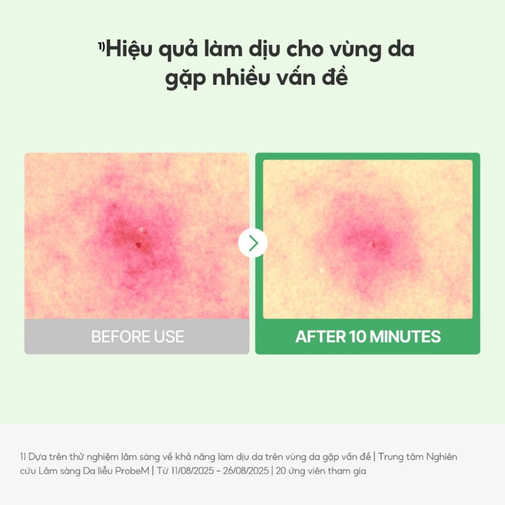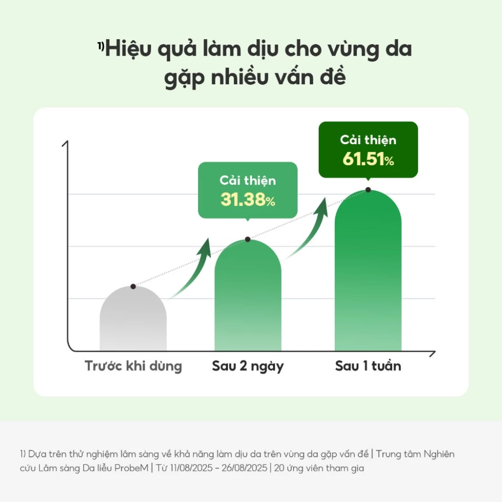 Chứa phức hợp 5D Cica Complex: 5 loại chiết xuất Centella Asiatica giúp làm dịu, phục hồi và khoẻ mạnh làn da.