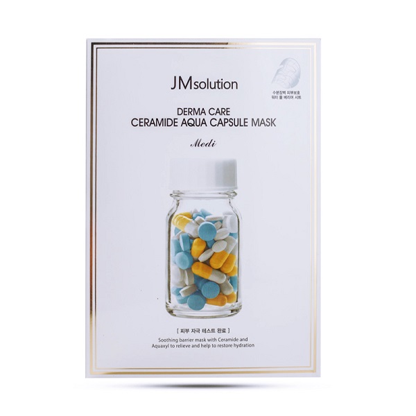 Mặt nạ dưỡng ẩm JM Solution Derma Care Ceramide Aqua Capsule Mask Medi giúp dưỡng ẩm sâu cho da, giải quyết vấn đề da khô, làm dịu, phục hồi da mang lại làn da mềm mại, mịn màng. Với công nghệ tiên tiến mặt nạ cấp ẩm-cấp nước của nhà JM Solution giúp xây dựng một hàng rào nước vũng chắc, giúp da ngậm nước và thâm nhập sâu vào da. Thích hợp sử dụng cho mọi loại da, đặc biệt là da khô, da nhạy cảm. Tăng độ đàn hồi giúp làn da căng bóng và mịn màng