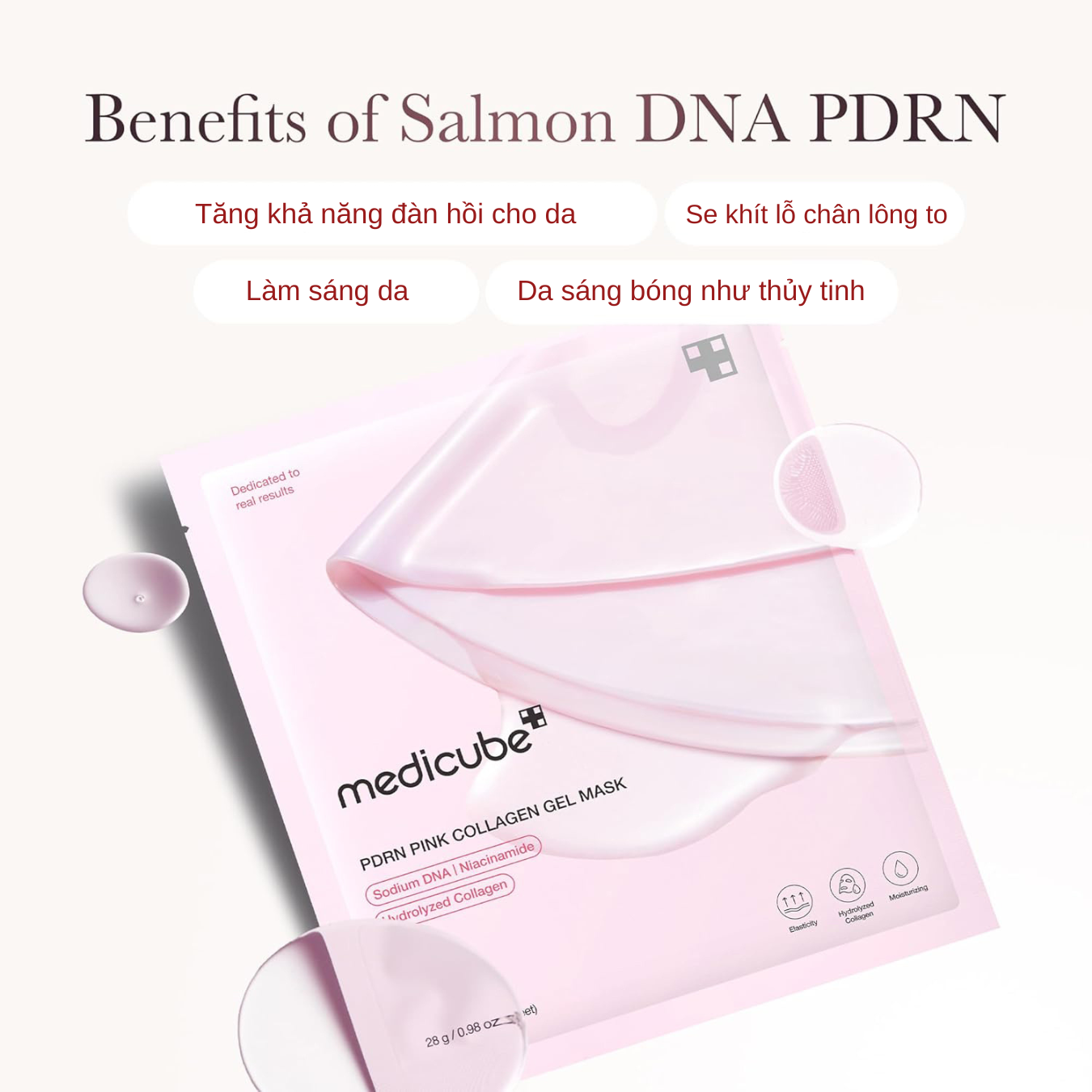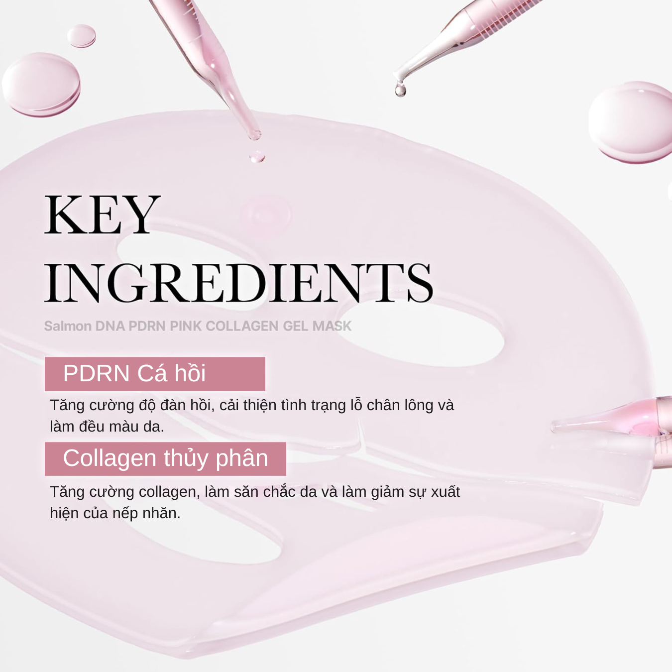 Mở khóa làn da tươi trẻ rạng rỡ với Mặt nạ gel collagen hồng PDRN đổi màu đột phá!..Mặt nạ thạch PDRN Cá hồi mang tính cách mạng này chứa đầy các thành phần mạnh mẽ giúp tăng cường độ đàn hồi của da và mang lại làn da sáng mịn.