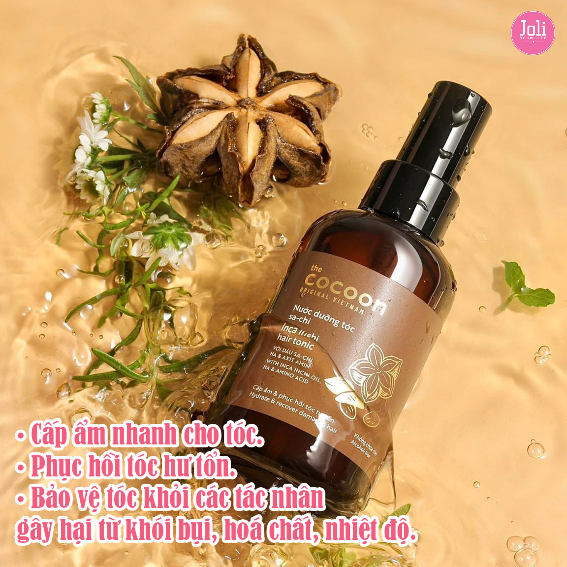 Nước Dưỡng Tóc Cocoon Sa-Chi Cấp Ẩm, Phục Hồi Hư Tổn 140ml là sản phẩm xịt dưỡng tóc đến từ thương hiệu mỹ phẩm Cocoon của Việt Nam, thành phần chứa dầu sa-chi kết hợp với HA và các axit amin sẽ bao phủ toàn bộ mái tóc giúp cấp ẩm nhanh, củng cố và bảo vệ lớp sừng của tóc, từ đó phục hồi hư tổn giúp tóc trở nên ẩm mềm, chắc khoẻ đầy sức sống.