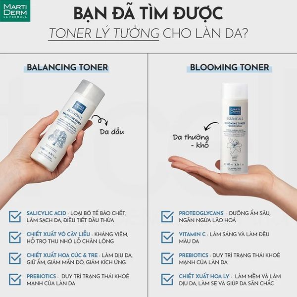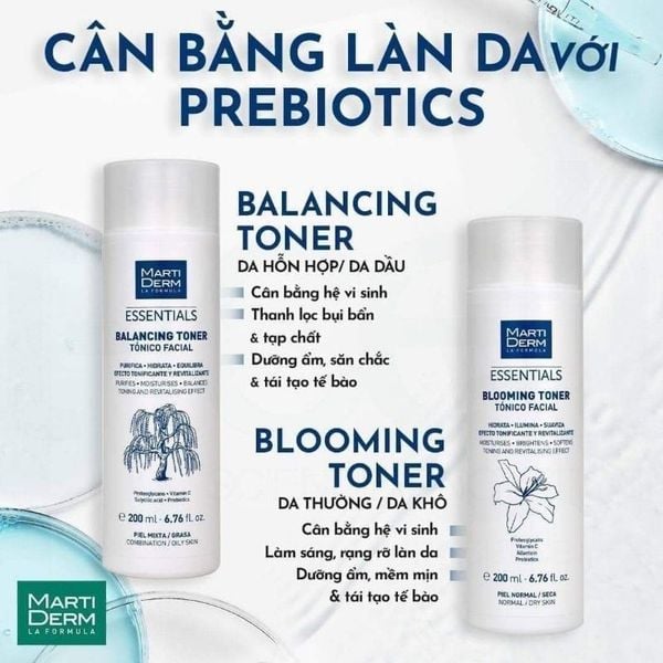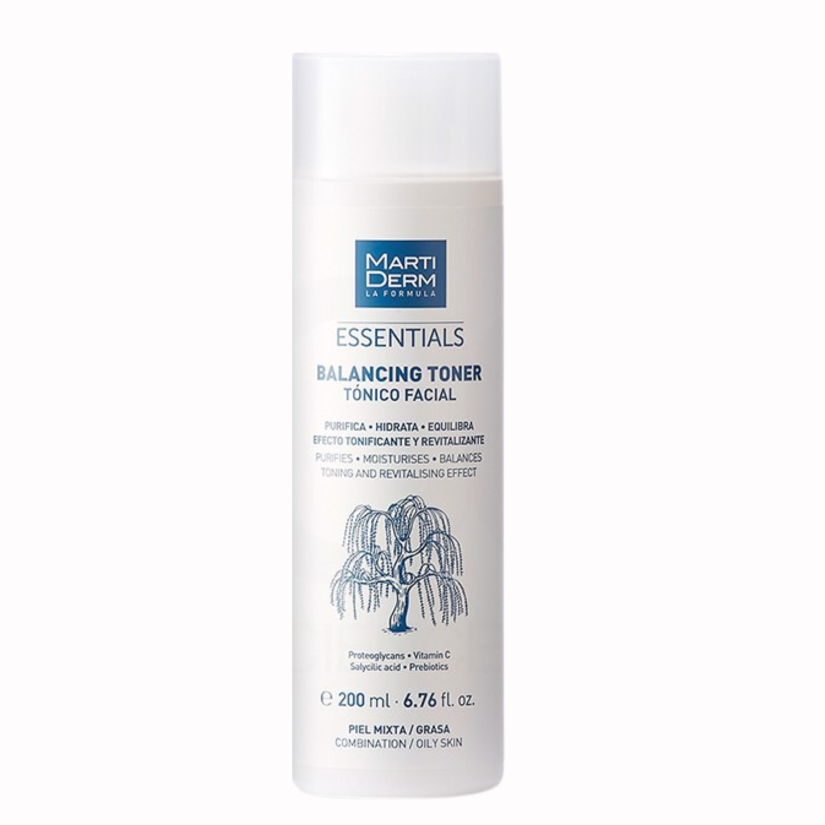 MartiDerm Essentials Balancing Toner là nước cân bằng da có chứa BHA giúp da làm sạch dầu thừa, bụi bẩn, bã nhờn còn thừa trên da sau bước rửa mặt đồng thời cân bằng độ PH cho da, tránh bít tắc da và thu nhỏ lỗ chân lông cho da từ đó giúp da duy trì độ ẩm và bảo vệ hàng rào tự nhiên cho da. Ngoài ra giúp da hấp thụ các dưỡng chất từ bước skincare sau tốt hơn, giúp da luôn trong trạng thái sạch sẽ mềm mại và tràn đầy sức sống.
