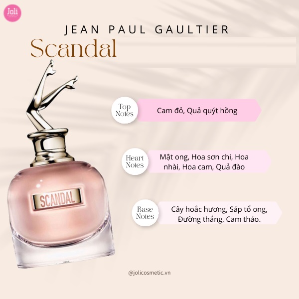 Nước hoa nữ Jean Paul Gaultier Scandal EDP được ra mắt vào tháng 6 năm 2017 với sự hợp tác của Puig với tên gọi Jean Paul Gaultier Scandal, một hương thơm ngọt ngào, tươi mát, ấm cúng và trái cây. Scandal Jean Paul được thiết kế để phá vỡ tất cả hình ảnh quen thuộc của thương hiệu Jean Paul Gaultier tạo nên một cái gì đó mới và hiện đại, đồng thời mạnh mẽ và thanh lịch.