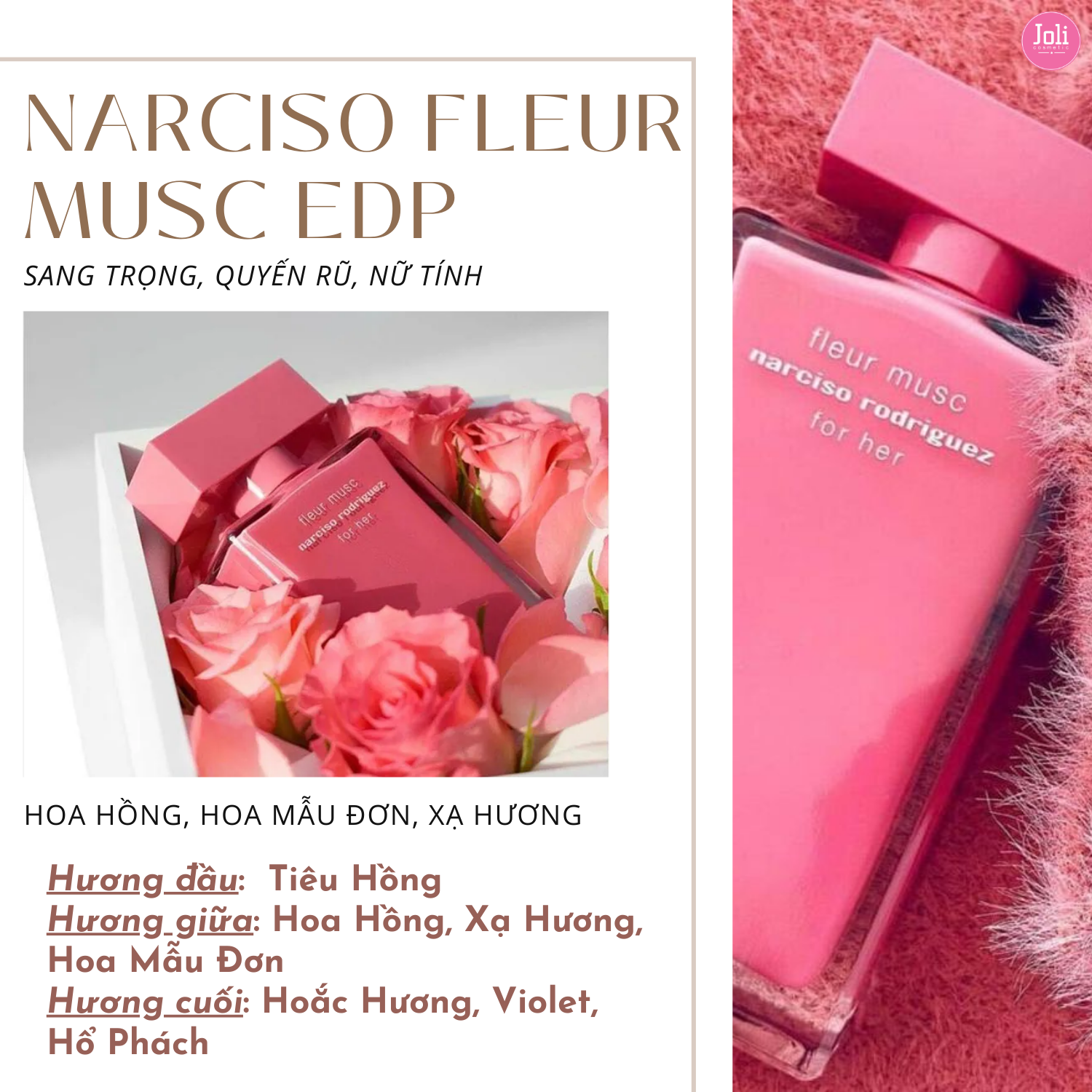Hương giữa: Hoa hồng, Hoa mẫu đơn, Xạ hương.