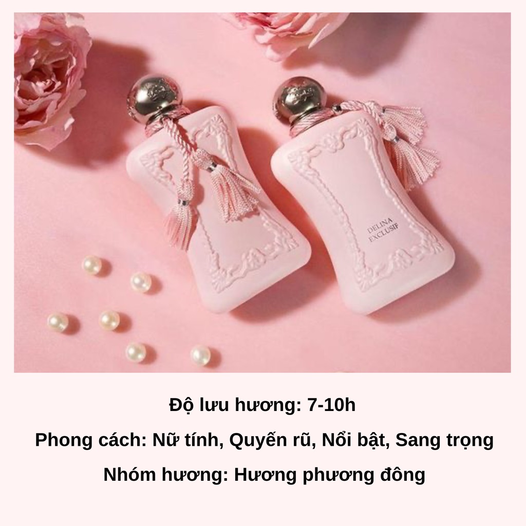 Parfums De Marly là một thương hiệu nước hoa danh tiếng của Pháp, được thành lập vào năm 2009 bởi Julien Sprecher. Thương hiệu này lấy cảm hứng từ thời kỳ vinh quang của triều đại Louis XV, một thời đại nổi tiếng với những loại nước hoa xa hoa và cầu kỳ. Delina là một trong những dòng nước hoa nổi bật của Parfums De Marly, ra mắt vào năm 2017 và nhanh chóng trở thành biểu tượng của sự sang trọng và quyến rũ.
