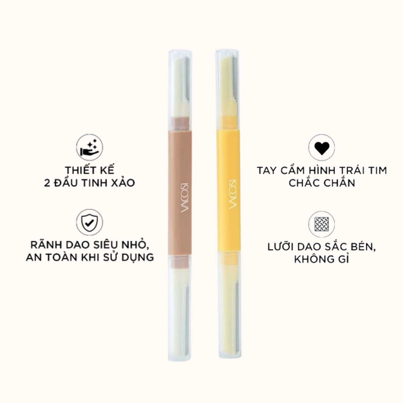 Dao Cạo Mày Vacosi 2 Đầu Dual-End Eyebrow Razor là sản phẩm dao cạo đến từ thương hiệu Vacosi – Hàn Quốc, được thiết kế dành cho cả nam và nữ, mang đến sự tiện lợi trong việc chăm sóc và định hình chân mày, ria mép cùng các vùng trên gương mặt và cơ thể.
