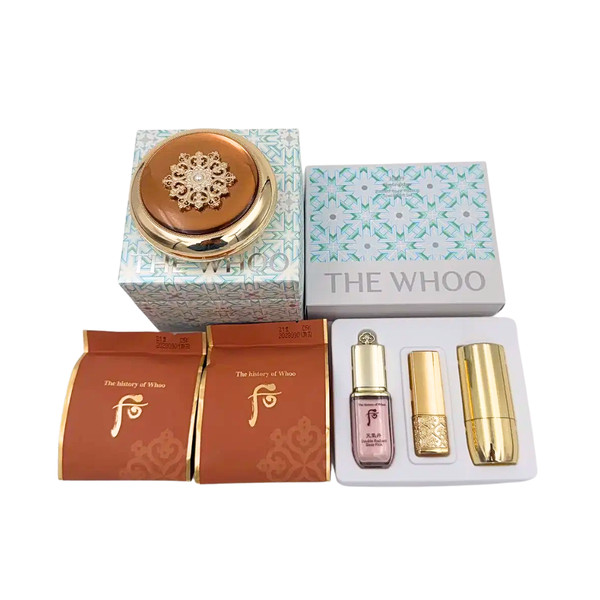 Bộ sản phẩm này không chỉ mang lại lớp trang điểm hoàn hảo, tự nhiên mà còn giúp bảo vệ và nuôi dưỡng làn da với chỉ số SPF50+/PA++++, giúp bạn tự tin tỏa sáng trong mọi khoảnh khắc. Phấn Nước No.21 với khả năng che phủ tốt và độ bám màu lâu trôi, kết hợp cùng Kem Lót Base Pink giúp tạo nền mịn màng, rạng rỡ. Son No.24 Red Orange mang đến màu sắc tươi tắn, quyến rũ, phù hợp với nhiều phong cách trang điểm. Cùng với Cọ Tán Cushion, bạn sẽ dễ dàng tạo nên vẻ đẹp hoàn hảo, đầy sức sống. Giftset Makeup 6 Món The History Of Whoo Cheongidan Radiant Special là lựa chọn lý tưởng cho những ai yêu thích sự sang trọng và chất lượng trong từng sản phẩm trang điểm.