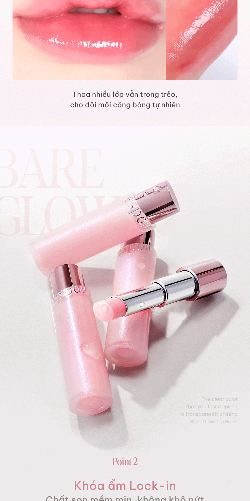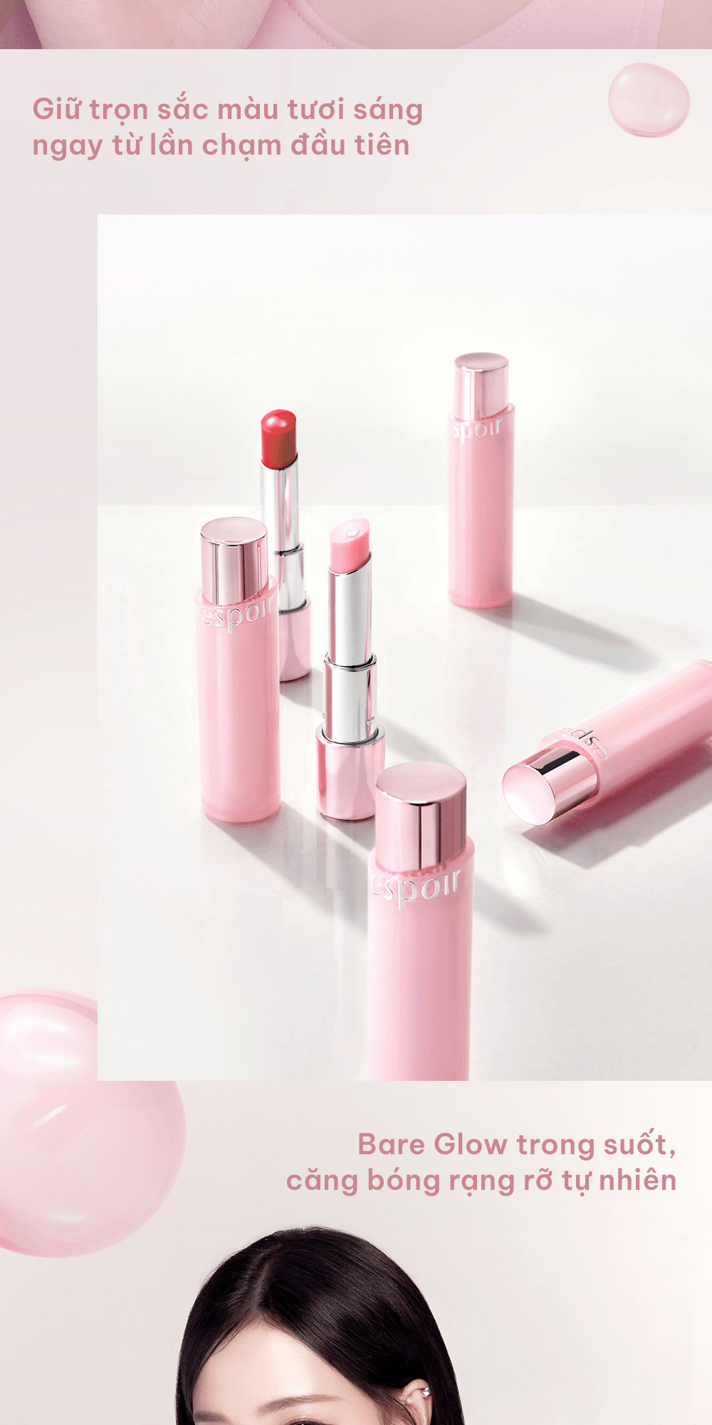 Nếu bạn yêu thích phong cách trang điểm nhẹ nhàng, trong veo kiểu Hàn thì set son 2 món từ Espoir chắc chắn sẽ khiến bạn “đổ gục” ngay từ cái nhìn đầu tiên. Sự kết hợp hoàn hảo giữa son dưỡng Bare Glow Lip Balm giúp đôi môi mềm mượt, ẩm mịn và son tint Couture Lip Tint Glaze Mini mang lại sắc màu trong trẻo, bóng nhẹ như phủ sương – cho đôi môi vừa khỏe đẹp vừa cuốn hút tự nhiên.