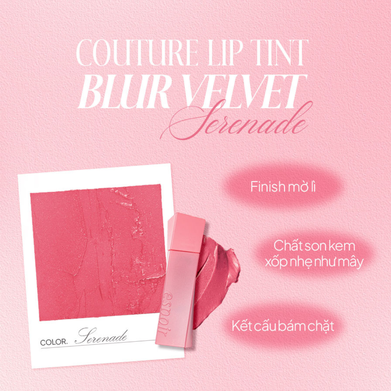 Màu sắc thời thượng: Hoàn thiện vẻ ngoài với Son Espoir Couture Lip Tint Blur Velvet Serenade. Chất son lì mịn, màu sắc tươi tắn sẽ giúp đôi môi của bạn trở nên cuốn hút.