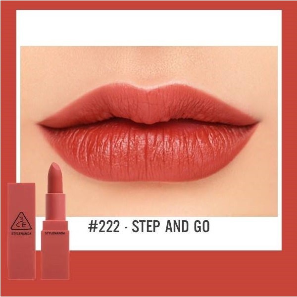 3CE Mood Recipe Matte Lip Color với vỏ ngoài hình vuông và phủ một lớp nhung mịn màng nên cầm trên tay rất sang trọng. Các màu sắc của dòng son này đều mang đậm phong cách thu đông đầy trầm ấm, tinh tế và vô cùng "tây" đấy nhé. Màu vỏ bên ngoài tone-sur-tone với màu son bên trong, vì vậy các nàng có thể dễ dàng phân biệt được màu son từ bên ngoài. Do là dòng son lì nên ưu điểm của 3CE Mood Recipe Matte Lip Color là khá bền màu và không bị trôi nhiều sau khi ăn uống.