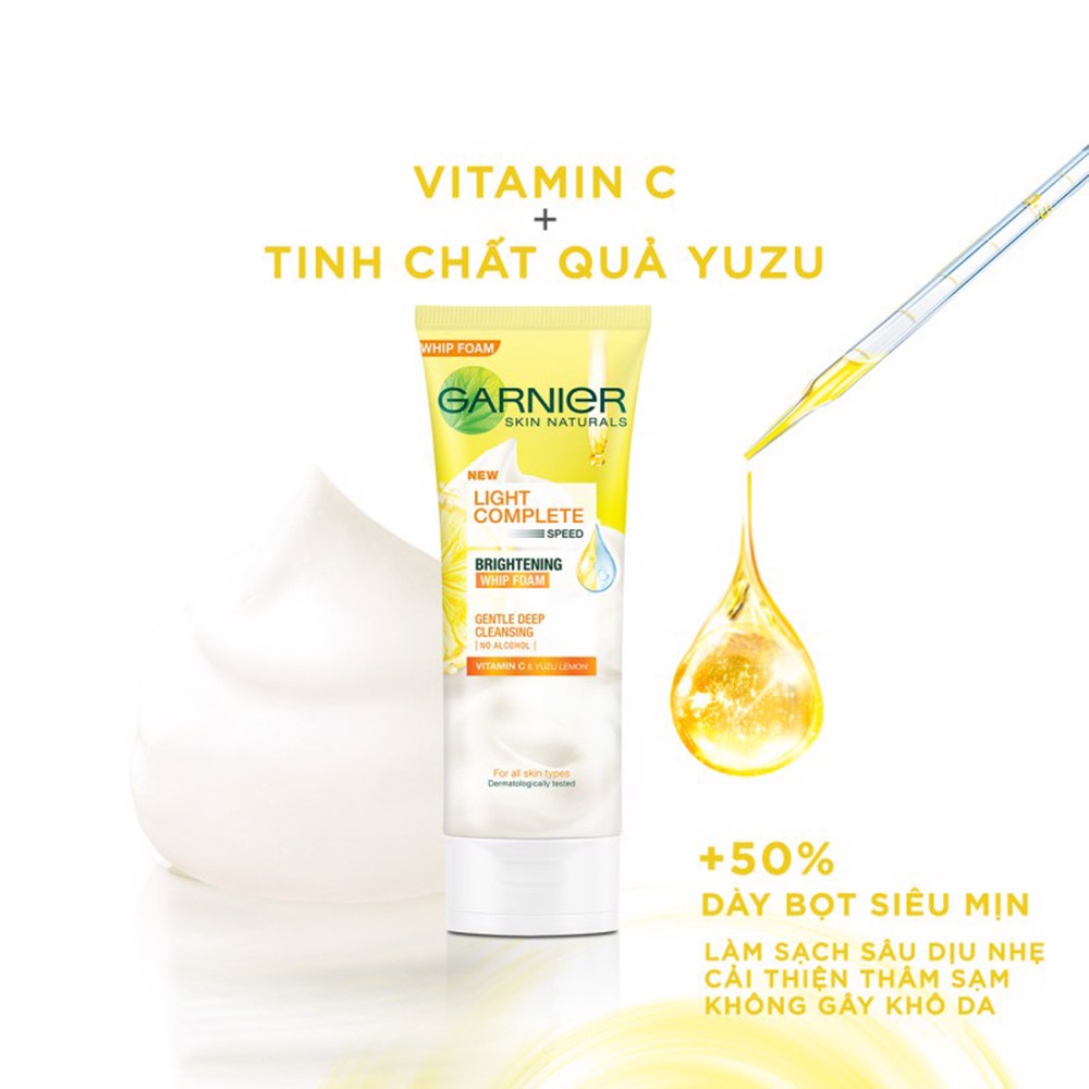 Sữa Rửa Mặt Tạo Bọt Sáng Da Garnier Light Complete Brightening Whip Foam 100ml là sữa rửa mặt thuộc thương hiệu Garnier là sự hòa quyện giữa Vitamin C và tinh chất Chanh Yuzu giúp dưỡng da trắng sáng đều màu. Sữa rửa mặt có độ pH chuẩn cùng với những hạt bọt xốp giúp làm sạch sâu nhưng vẫn làm da mềm mại mà không bị khô căng sau khi rửa. Phù hợp với mọi loại da kể cả làn da nhạy cảm.