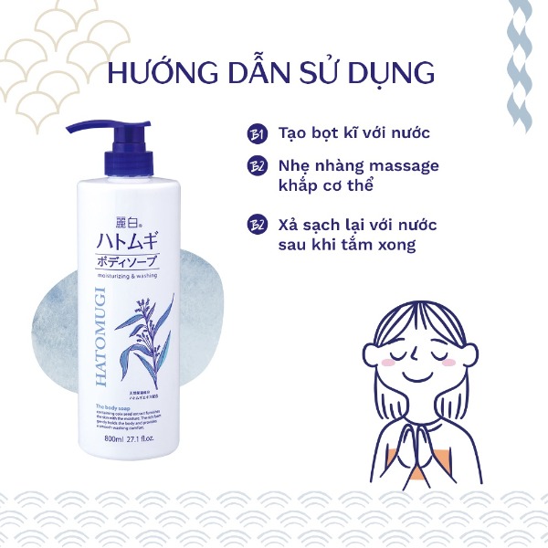 Sữa Tắm Hatomugi Moisturizing & Washing The Body Soap là sữa tắm thuộc thương hiệu Hatomugi với thành phần chính chiết xuất từ hạt Coix giúp làm sạch da một cách nhẹ nhàng, lấy đi tế bào chết giúp da thông thoáng, cung cấp độ ẩm cho da mịn màng, căng mướt, và trắng khỏe từ bên trong, làm dịu và phục hồi làn da bị cháy nắng. Là sản phẩm thường xuyên được các tạp chí đứng đầu tại Nhật Bản bình chọn thuộc top 3 sữa tắm có độ dưỡng ẩm tốt và được khách hàng yêu thích.