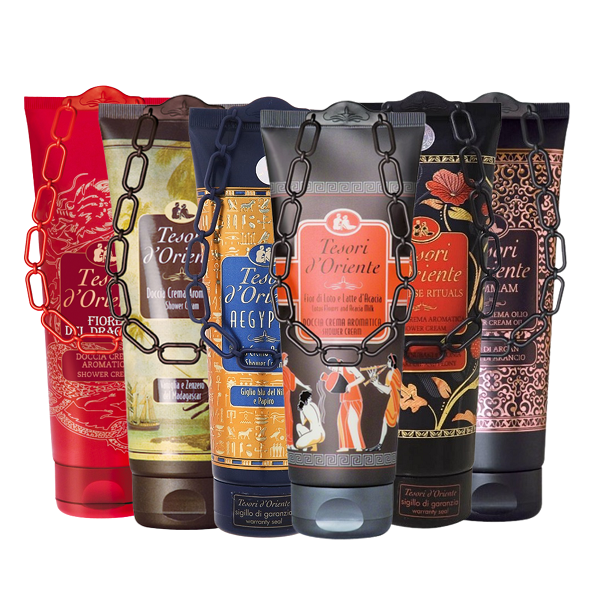 Sữa Tắm Hương Nước Hoa Ý Cao Cấp Dạng Tuýp Xích Tesori d'Oriente Aromatic Shower Cream là dòng sữa tắm hương nước hoa cao cấp độc quyền của thương hiệu Tesori. Sản phẩm đã ra mắt dạng tuýp xích nhỏ gọn, tiện lợi để mang du lịch. Ngoài ra sự kết hợp hài hòa của công nghệ chế tạo mỹ phẩm Italy và công thức bí truyền của các hoàng gia Phương Đông về chăm sóc cơ thể giúp cung cấp độ ẩm, loại bỏ da chết, đem lại cho bạn 1 làn da luôn tươi trẻ và đầy sức sống, đặc biệt cấu trúc 3 tầng hương thơm thường chỉ có ở các loại nước hoa cao cấp sẽ giúp da giữ lại hương thơm lâu bền lên đến 8 giờ.