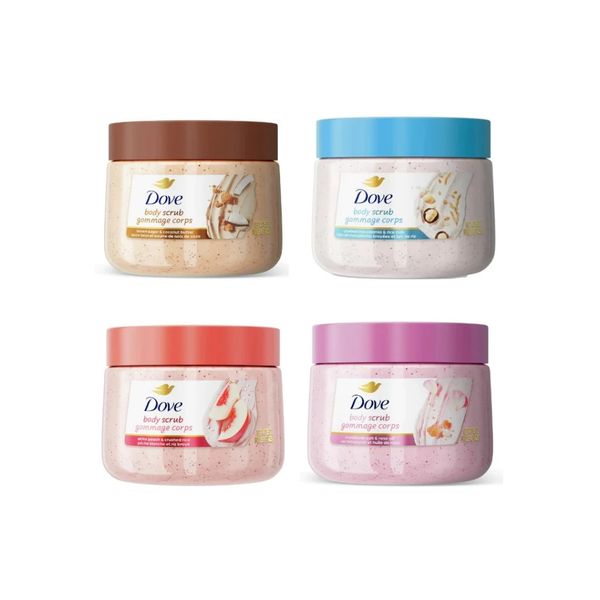 Tẩy Tế Bào Chết Dove Body Scrub Gommage Corps 425g là dòng sản phẩm tẩy tế bào chết toàn thân dạng kem mịn của Dove, với các hạt scrub dịu nhẹ giúp loại bỏ da chết, làm sáng và mịn da hiệu quả mà không gây khô rát, đồng thời cung cấp dưỡng ẩm nhờ ¼ kem dưỡng ẩm và dầu thực vật, mang lại làn da mềm mại, đủ ẩm cùng hương thơm thư giãn,