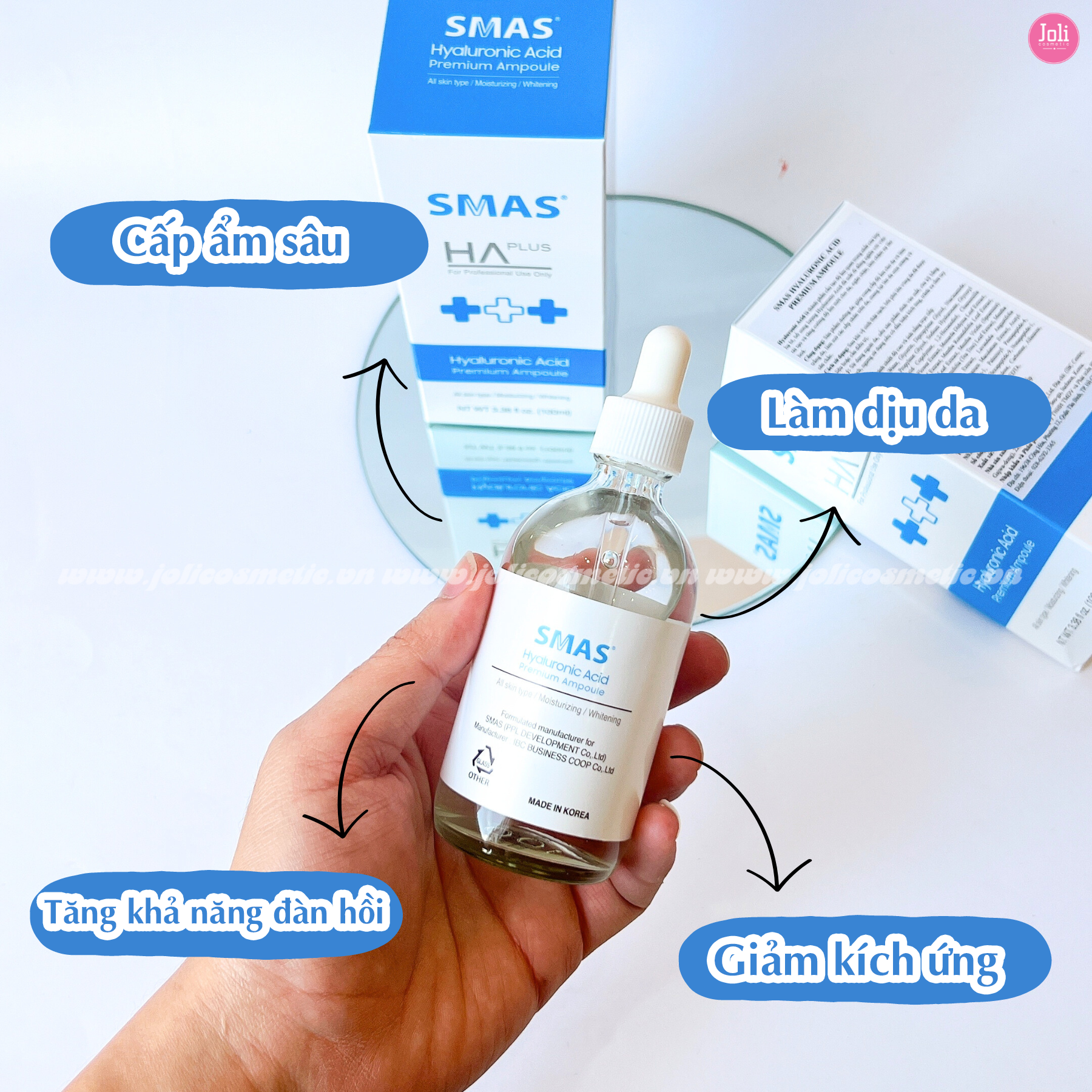 Serum Cấp Nước Sáng Da SMAS HA Plus Hyaluronic Acid 100ml là dòng sản phẩm dưỡng ẩm trẻ hoá da và hư tổn đến từ thương hiệu dược mỹ phẩm SMAS Hàn Quốc.Serum cấp nước này hỗ trợ tăng cường độ ẩm cho làn da của bạn, làm da không bị khô và cải thiện khả năng giữ nước của da