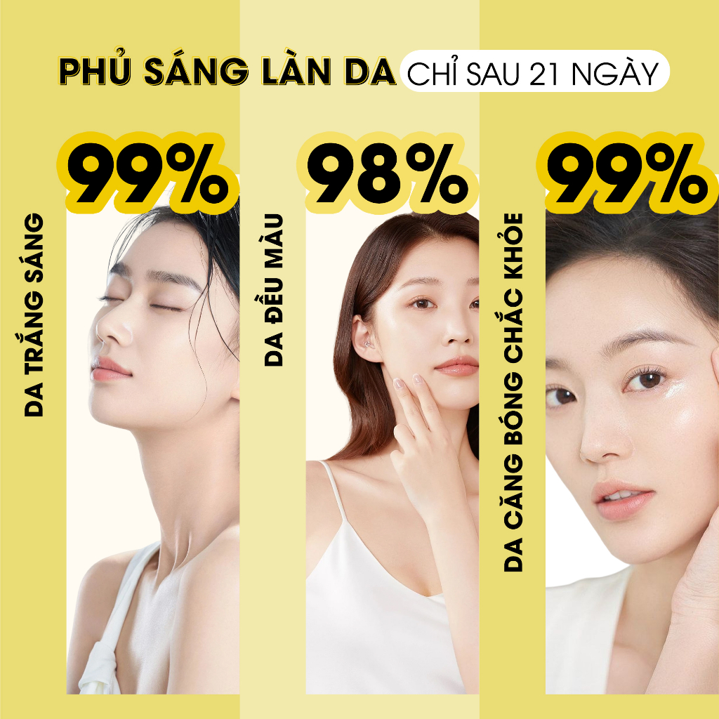 2% Alpha Arbutin ức chế sự hình thành hắc sắc tố Melanin tối màu từ gốc tế bào, làm mờ các đốm nâu dưỡng da trắng sáng rạng rỡ.