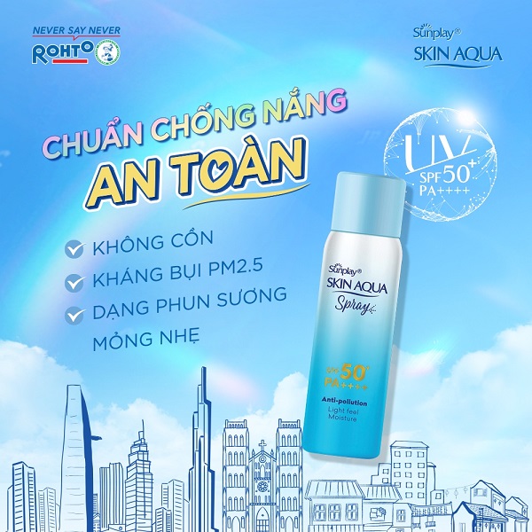 Xịt Chống Nắng Kháng Bụi Sunplay Skin Aqua Spray SPF50+/PA++++ là xịt chống nắng thuộc thương hiệu Sunplay với công nghệ Aqua Boost có khả năng cấp nước và dùy trì độ ẩm tự nhiên trên da, tạo một lớp màng giữ ẩm để làn da không bị mất nước khi tiếp xúc với ánh nắng hằng ngày cùng chỉ số chống nắng tối ưu giúp bảo vệ làn da trước các tác hại từ bên ngoài.